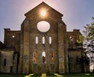 This has the classic gothic appearance of the other Cistercian complexes, with a three-nave Latin cross-shaped plant, rich in inlaid capitals, cloister, capitular hall, bell tower. The splendor and wealth of San Galgano and its excellent relations with Siena attracted the raids of the Fiorentine armies which led to a rapid decay of the abbey since the middle of the XV century. On January 6, 1786, the 36-meter-high bell tower collapsed overwhelming much of the roof. In 1789 the great church was completely abandoned, thus becoming an enormous quarry of stones and columns for the countries of the area. Fortunately, since the beginning of this century many restoration and maintenance works have been undertaken.