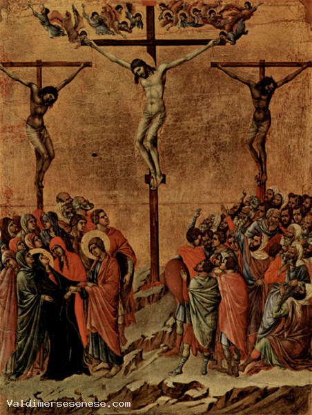 "La crocifissione" è un dipinto autografo di Duccio di Buoninsegna appartenente al registro principale della Maestà del Duomo di Siena, realizzato con tecnica a tempera su tavola nel 1308-11, misura 10 x 76 cm. ed è custodito nel Museo dell'Opera del Duomo di Siena.