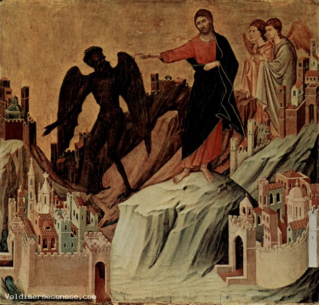 Maestà, pala d'altare di fronte Duomo di Siena,tempera ad olio, 43 × 46 cm.