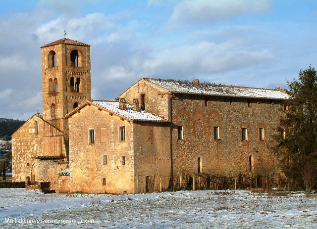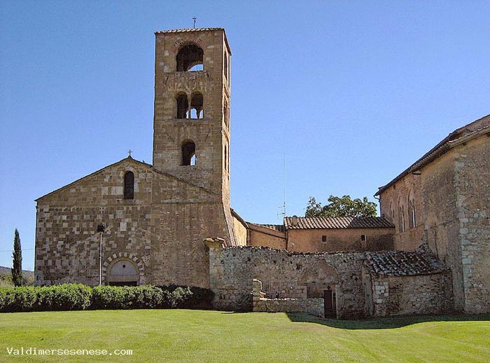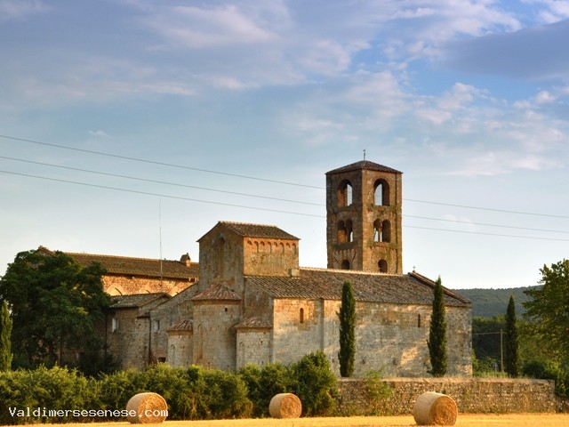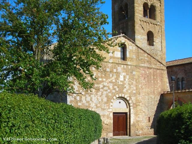 Ricordata dal 1189, costituisce uno degli edifici romanici più interessanti del senese. La pieve è a tre navate spartite da pilastri cruciformi e concluse da absidi. L'ultima campata della navata centrale reca una volta a botte che si imposta a una quota più alta, determinando la presenza di un tiburio, esternamente decorato con arcatelle pensili contenenti rombi e tondi gradonati. Nella facciata, spartita orizzontalmente da una cornice, si aprono un portale e un'ampia monofora. I capitelli, assai vari nelle raffigurazioni, sono di alta qualità. Il campanile, di stile lombardo, è aperto da bifore e monofore. All'interno si conserva una tavola di Bartolomeo Neroni detto il Riccio (XVI secolo), con Madonna col Bambino, angeli, santi e un vescovo.