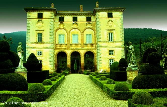 The villa was built between 1676 and 1678 by Cardinal Flavio Chigi, designed by the architect Carlo Fontana. This was never a place of representation but the residence where the Chigi withdrew for short periods of rest. The construction of this building s can be summarized into three stages: the first is the building of the house, its outbuildings and the formal garden and the second to the creation of the park of the Thebaid and the third to the construction of the hermitage. Cardinal Flavio Chigi left Cetinale grandchildren, who kept it for three centuries until 1977 when it was bought by British MP Lord Antony Lambton, who conducted a careful restoration, bringing Cetinale former glory. The building is rectangular in plan, spread over three floors. The main façade is essentially characterized by the elaborate double staircase that ends with the great central portal in marble on the first floor. This is framed by two columns buckled and crowned by a triangular pediment above which shows the coat of arms of the Chigi. The rear elevation is composed of two lateral structure protruding. This is a hole in the ground floor of three arches surmounted by a false portico with stone balustrade. All the windows and the arches of the arcades are framed by brick, contrasting with rusticated stone that mark the corners of the building. Large family crests decorate each opening on the first floor.