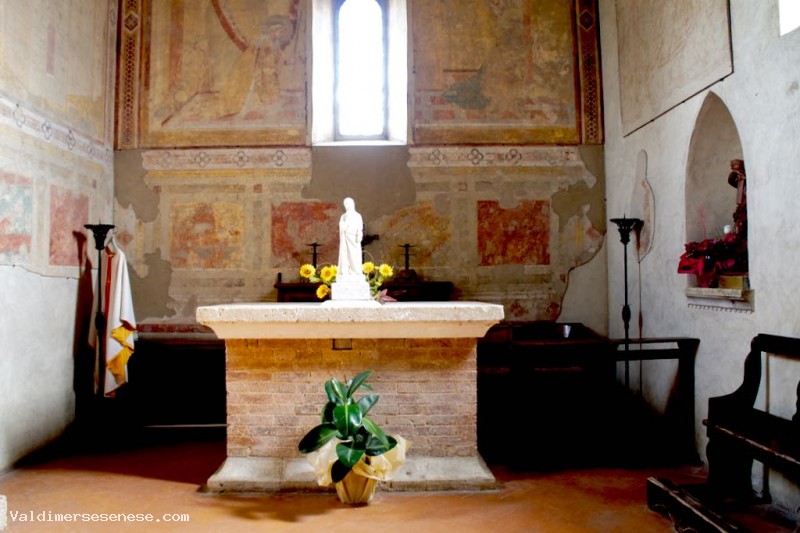 Sulla parte sinistra, rispetto all'ingresso, si trova una cappella dalla pianta rettangolare coperta con una volta a crociera; tale cappella è stata realizzata all'inizio del Trecento e affrescata tra il 1334 e il 1336 da Ambrogio Lorenzetti. Gli affreschi si presentano molto deteriorati, anche se nel 1967 sono stati prima staccati per restaurarli e poi ricollocati nella loro sede insieme alle rispettive sinopie venute in luce durante i lavori.